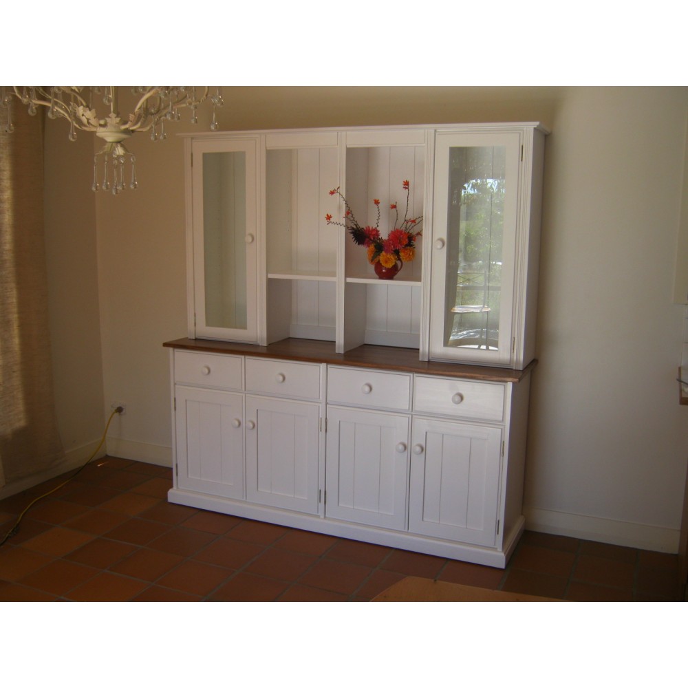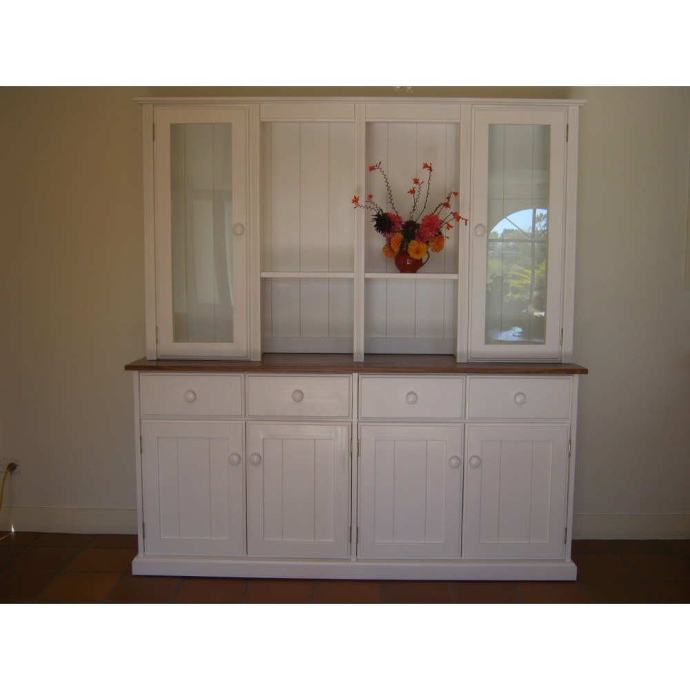 - 2 of 290mm deep shelves in each top Hutch glass cupboard